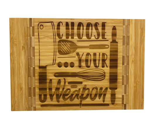 Engraved Cutting Board Wording Choose Your Weapon Bamboo Gift