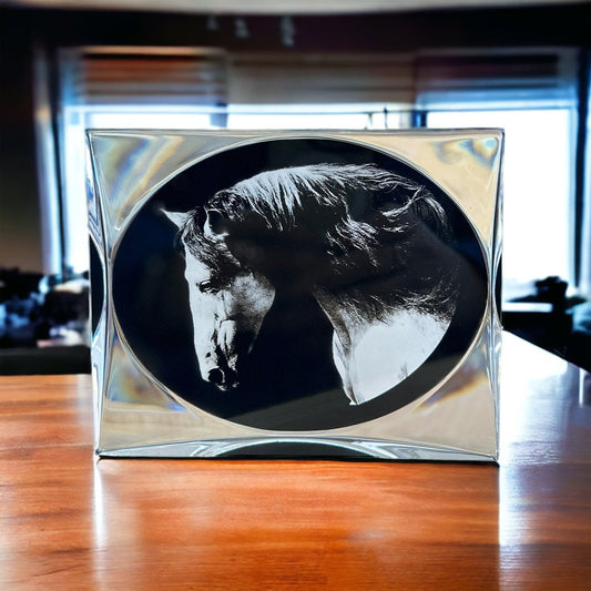 Horse Art Gifts Portrait Home Decor, Birthday Horse Lover Black Clear Plaque Award, White Horse Modern Portrait Gift for Him Her