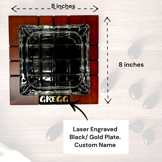 Personalized Cigar Ashtray Square Wood Glass Groomsman Dad Fathers Day Gift for Him